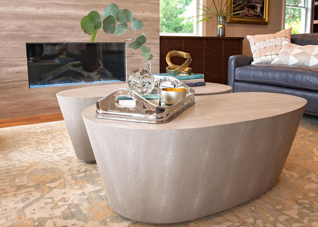 Shagreen coffee tables can be split to serve different areas of the living space, but also wipe off if messy hands touch them.