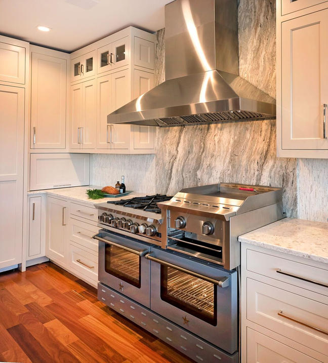 They wanted a 60" range with a broiler and double ovens that multi-task. We chose Blue Star and love the ability to choose from a wide array of painted finishes.