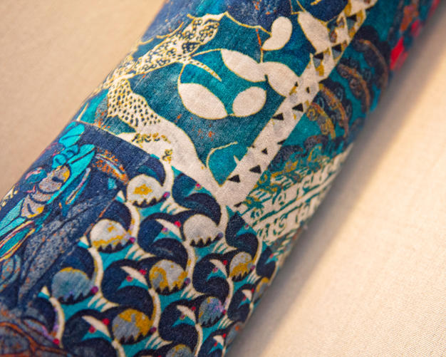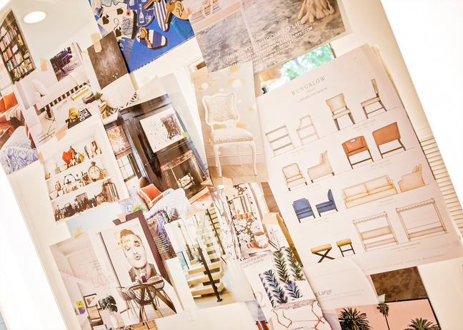 We chose slate colored leather sofas and indoor/outdoor velvet to hold up to kids and dogs.