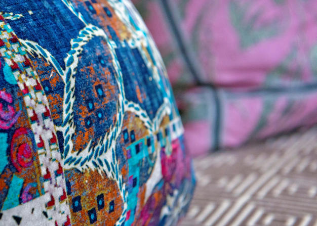 We chose slate colored leather sofas and indoor/outdoor velvet to hold up to kids and dogs.